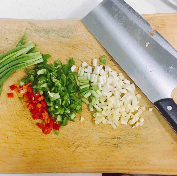 蔥,姜,蒜,青椒,紅椒切丁待用