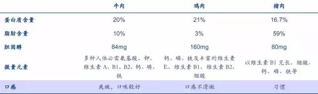 肉類品質(zhì)競爭力比較(每100g含量),牛肉高品質(zhì)和高價格同消費力密切相關