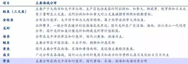 區(qū)域性。由于海水產(chǎn)品對生長海域的水溫、氣候等均有較為嚴格的要求,因此海水產(chǎn)的打撈或養(yǎng)殖領域就相對固定,具有明顯的區(qū)域性特征。且相同種類海產(chǎn),在不同的水域生長,其產(chǎn)品特征、口味都會有所不同。