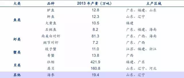 國內(nèi)海水養(yǎng)殖的主要海水產(chǎn)品種的主產(chǎn)區(qū)域也各不相同。如大黃魚主產(chǎn)自福建,海參主產(chǎn)自山東、遼寧,對蝦主產(chǎn)自廣東、廣西等省份。