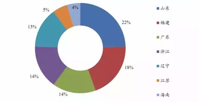 沿海各省份海水產(chǎn)品產(chǎn)量占比情況